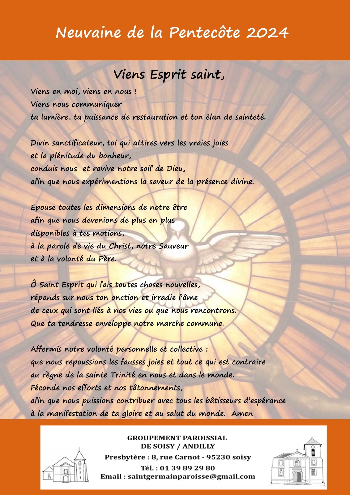 Chers paroissiens, la paroisse vous propose cette prière à faire tous les jours jusqu’à la Pentecôte […]
