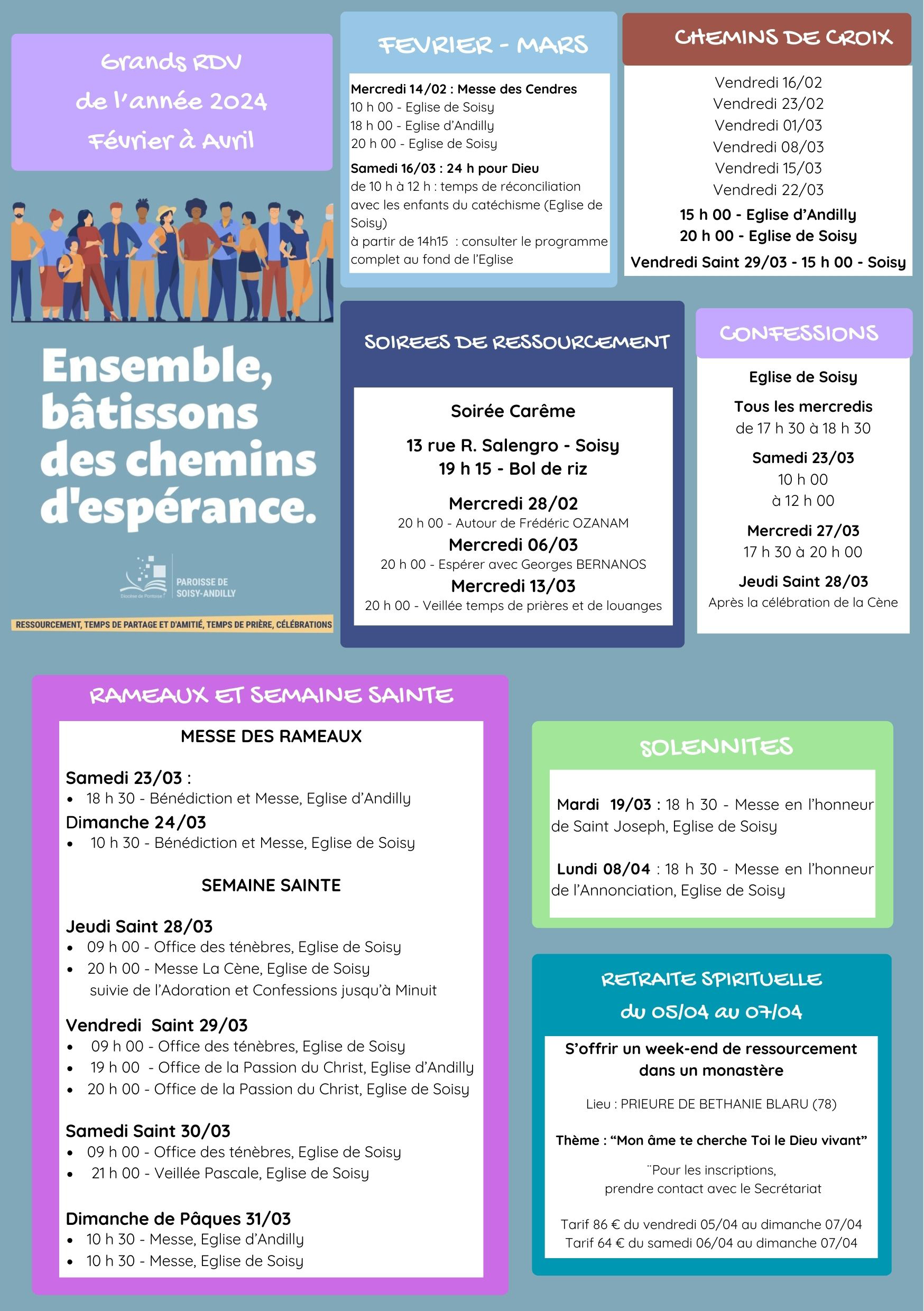 Chers Paroissiens, Voici les événements et célébrations de février jusqu’à Pâques.