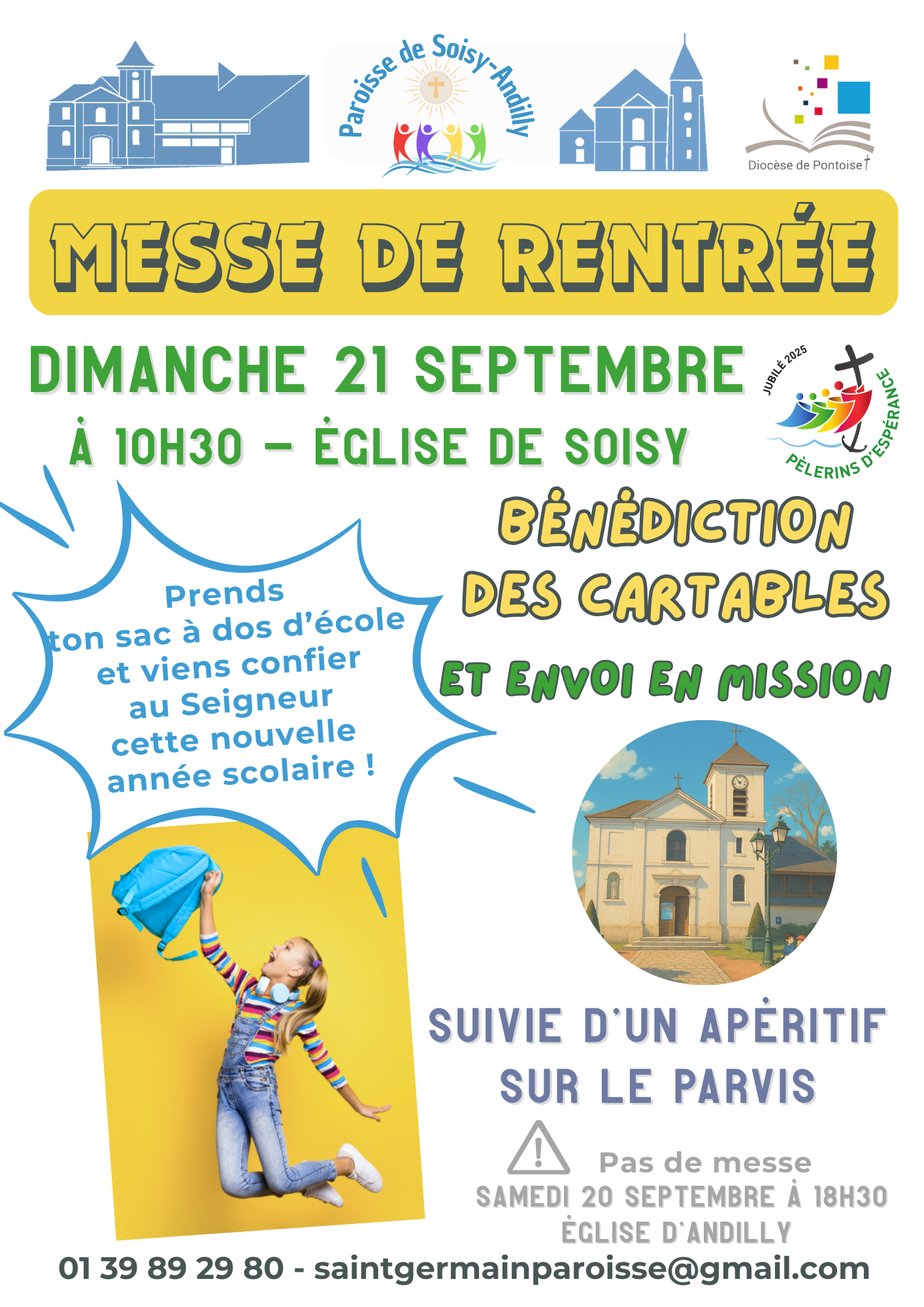 Église Saint Germain - Soisy 3 rue carnot, Soisy-sous-Montmorency, FranceMesse de rentrée avec la bénédiction des cartables suivie d'un apéritif sur le parvis de l'église.