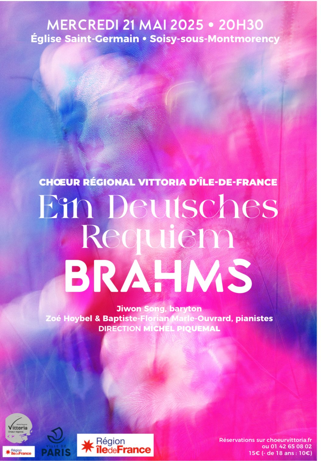Le CHOEUR RÉGIONAL VITTORIA D'ILE DE FRANCE dirigé par l'emblématique Chef de Choeur MICHEL PIQUEMAL revient à Soisy-sous-Montmorency le Mercredi 21 mai à 21h30 à l'Église Saint-Germain. Il donnera Un Requiem allemand de BRAHMS Vous trouverez ci-dessous les éléments d'informations : Réservations sur : choeurvittoria.fr ou https://my.weezevent.com/brahms-vittoria ou 01 42 65 08 02 Tarifs : 15€ (- de 18 ans : 10€) Le Choeur VITTORIA d'Ile de […]